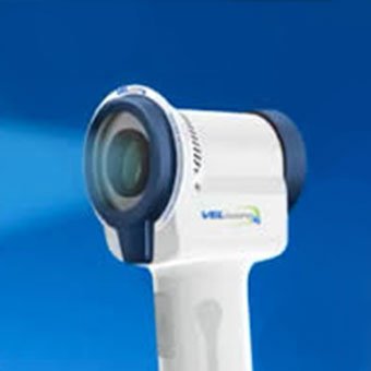 The VELscope screening system consists of a specialized white light source and viewing scope that make it easier for your doctor to look closely at the tissues inside your mouth. Normal tissues will almost glow a bright green color. Abnormal tissue shows up much darker under the special light.